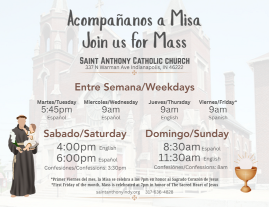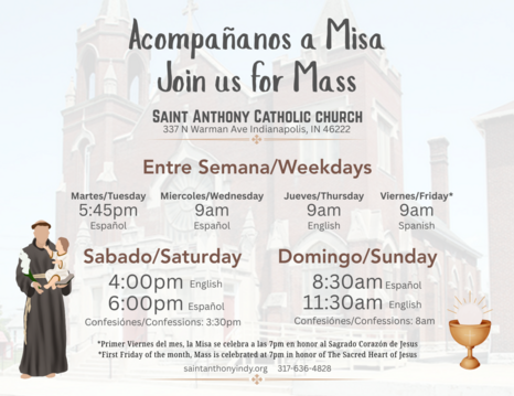 Saint Anthony Catholic Church is a parish that celebrates diversity and unity within the body of Christ. Through the celebration of our sacramental and prayer life and the breakdown of language and cultural barriers, we seek to build one spirit-led community that nurtures our children, cares for our elderly, forms all members in one faith, reaches out to the poor, and welcomes those who seek Christ and has fun together.
