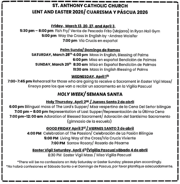 Lent Schedule - Calendario de Cuaresma
